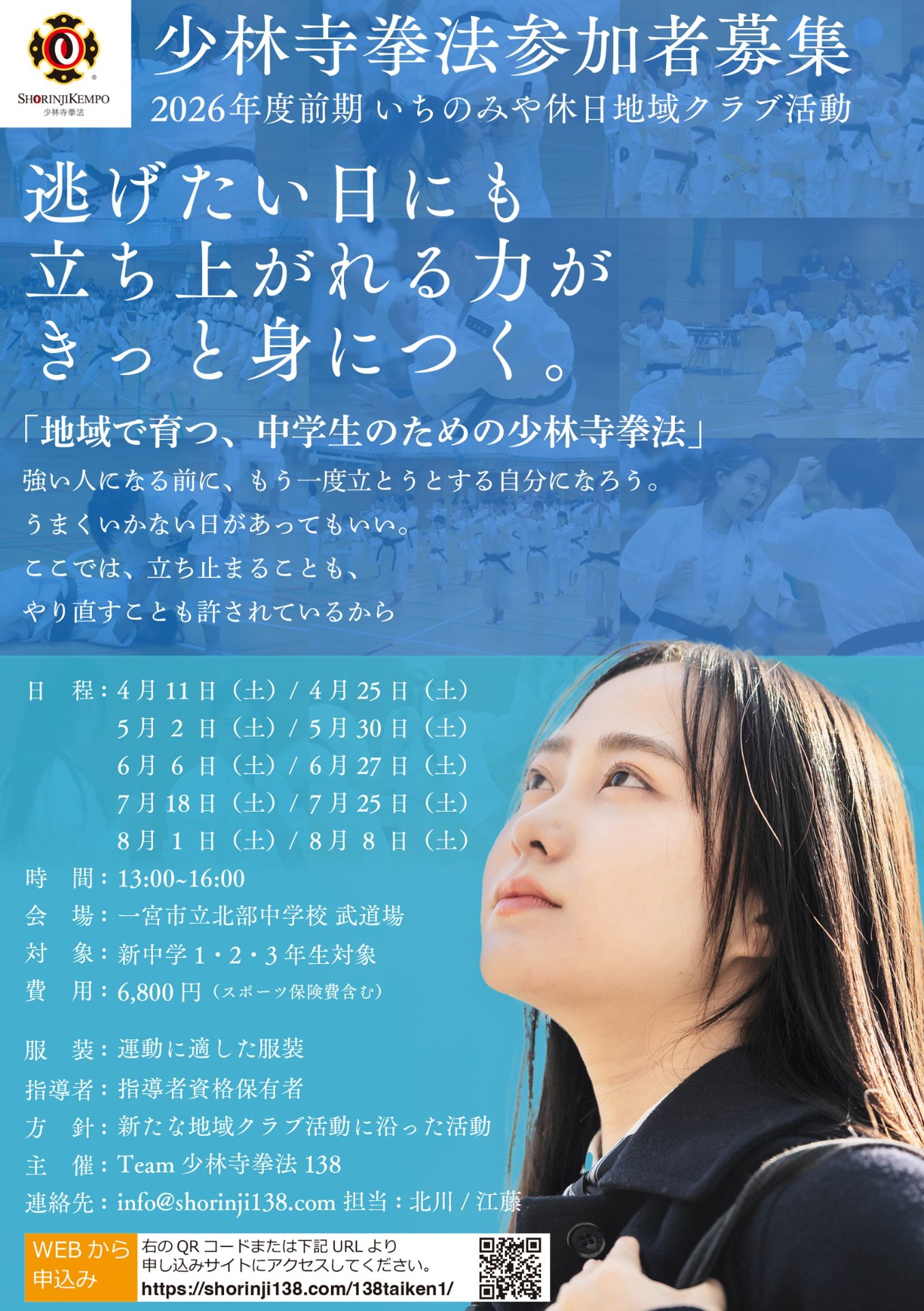 守りから始まる少林寺拳法の技術は、力任せではない合理的な動き。体格に関わらず「自分を守れる」という安心感は、内面からの揺るぎない自信に変わります。